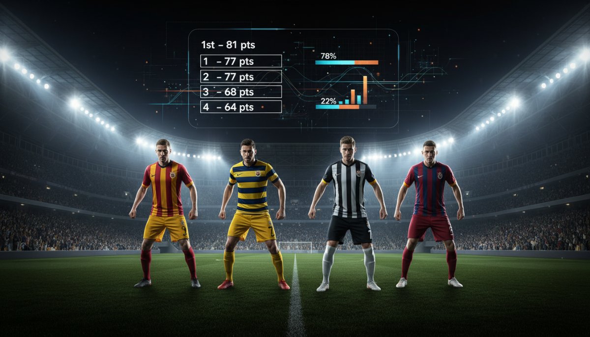 Yapay zeka analizlerine göre Galatasaray’ın sezon sonunda şampiyon olma ihtimali %78,1’e çıkarak oldukça olumlu bir tablo çiziyor. Fenerbahçe’nin şampiyonluk ihtimali ise %21,6’ya geriledi. Trabzonspor’un durumu ise %0,3 olarak güncellendi.